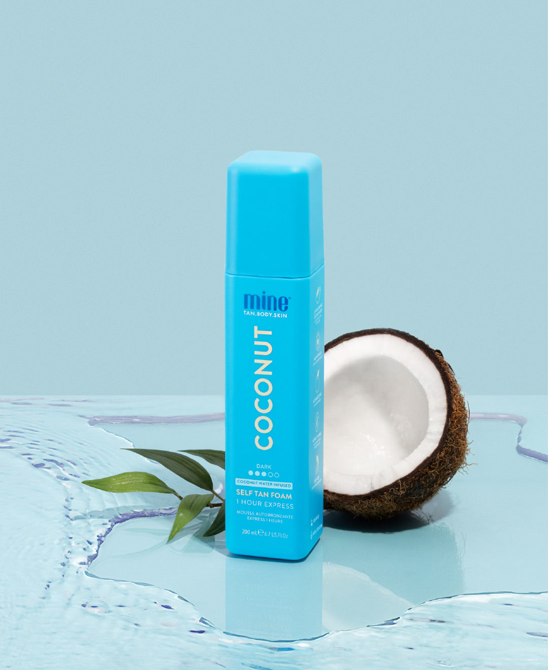 La espuma autobronceadora de agua de coco se adapta a todo tipo y tono de piel para quienes desean un acabado de piel de color marrón oscuro, rico e intensamente hidratante.